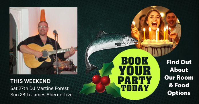This Weekend we have some great entertainment lined up for you with DJ Martine Forest spinning the decks on Saturday night at 9pm and James Aherne Live on Sunday ay 6.30pm. You can rock on up on Saturday or Sunday or book a table and secure the best space for enjoying the evening.